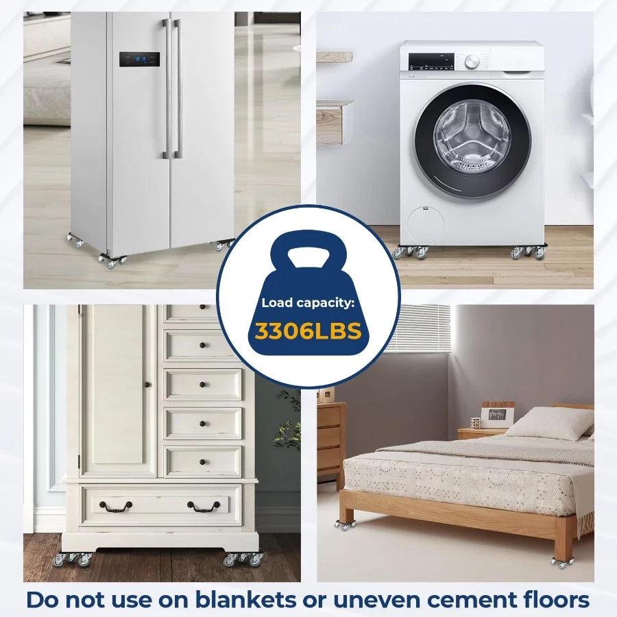 Heavy Load Capacity: With a maximum load capacity of up to 3,306 pounds, the four furniture dolly set is great for moving heavy homes. It is capable of moving large appliances such as refrigerators and washing machines, or large homes such as sofas, beds and armoires. The top contact surface of a single pulley measures: 6.3×6.3inch.