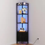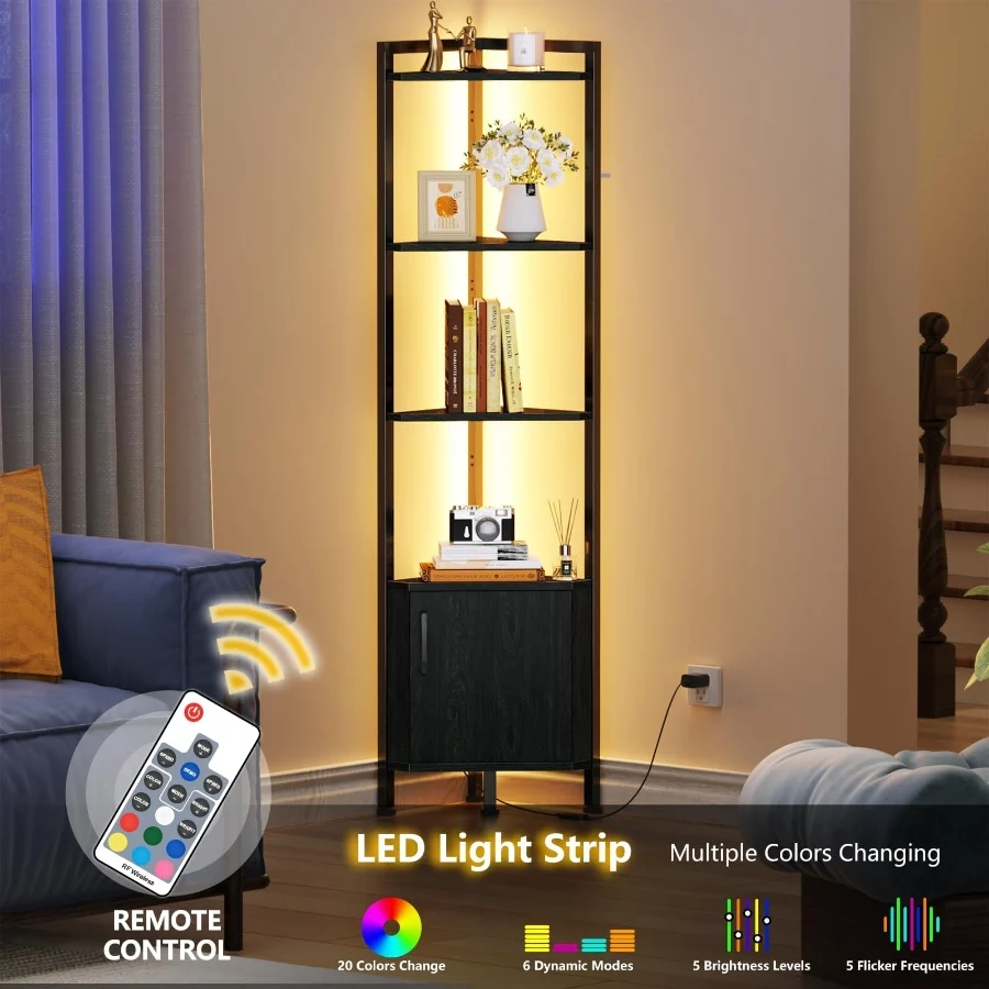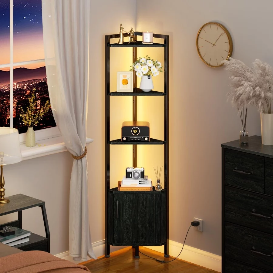 Furnulem 5-Tier Corner Shelf with LED Light, 62.8” Standing Cabinet Bookshelf, Wood Display Storage for Living Room Bedroom photo review