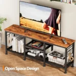 Ample Storage Space: This tv console has 2 tiers open mesh shelves and 4 hooks, provides ample space to organize and display your media equipment, gaming consoles, DVDs, Xbox, PS4 and more. Keep your living room tidy and clutter-free.