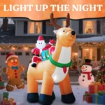 Light Up the Christmas Night: This Christmas blow up yard decorations features 9 built-in high-brightness LED lights to illuminate your yard on Christmas Eve.The glowing reindeer and santa claus becomes the most eye-catching Christmas inflatable decoration in your yard. Add this stunning piece to your holiday collection now!