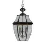 The Lancaster three-light outdoor pendant in Antique Brushed Nickel enhances your home’s exterior charm, boosts safety, and lets you enjoy your outdoor spaces longer into the evening. Designed to capture the timeless appeal of traditional lighting, this fixture features clear curved beveled glass that beautifully catches and reflects light, offering a warm, inviting glow. Available in four elegant finishes — Polished Brass, Black, Antique Bronze, and Antique Brushed Nickel — the Lancaster Collection offers a full range of coordinating outdoor wall, post, and pendant lanterns. Select models are also compatible with LED retrofit lamps (sold separately) for improved energy efficiency.