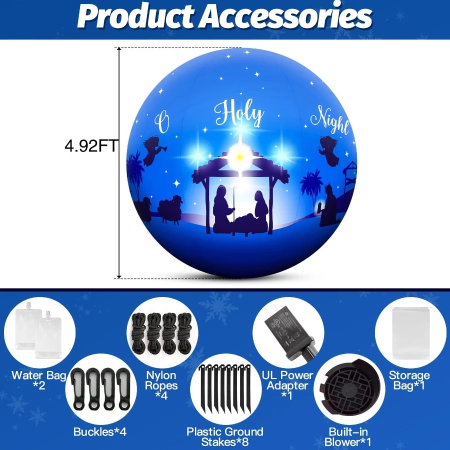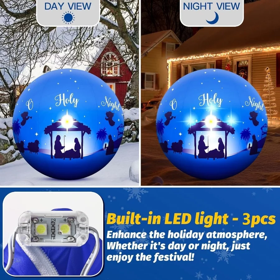 Giant 5FT Nativity Scene Inflatable – Holy Night Blow Up Ball with Built-in LEDs for Yard, Garden, Park & Christmas Party