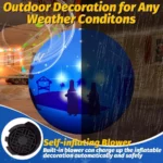 Easy Process & Quick Storage: No complicated steps here! First, fill the included water bag with water, then turn on the built-in air blower, your inflatable will fully expand in just 5-10 minutes. Finally, secure it by tying the attached ropes to the ground stakes and inserting them into the soil. When the holidays end, it deflates in seconds and stores easily in the included storage bag. Measuring 5 feet in diameter, it’s the perfect size for most areas.
