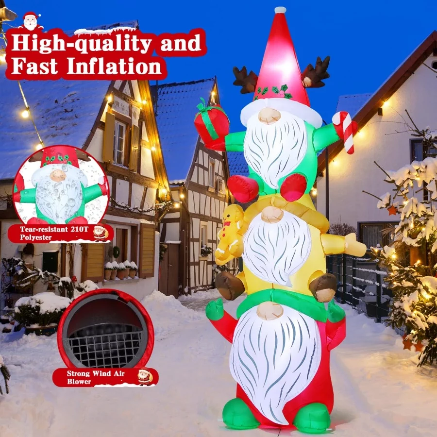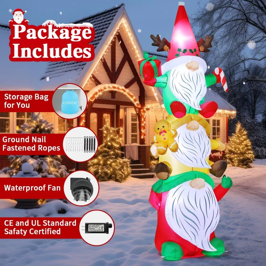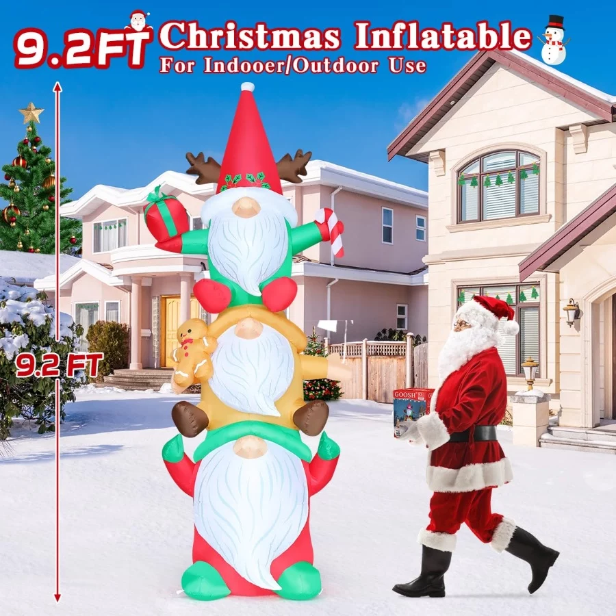 GOOSH 9.2FT Blow Up Christmas Gnomes Inflatable with Built-in LEDs, Gingerbread Man Outdoor Yard Lawn Holiday Decor Waterproof