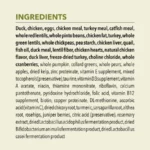 - Grain free recipe starting with duck, free run chicken, turkey, and eggs