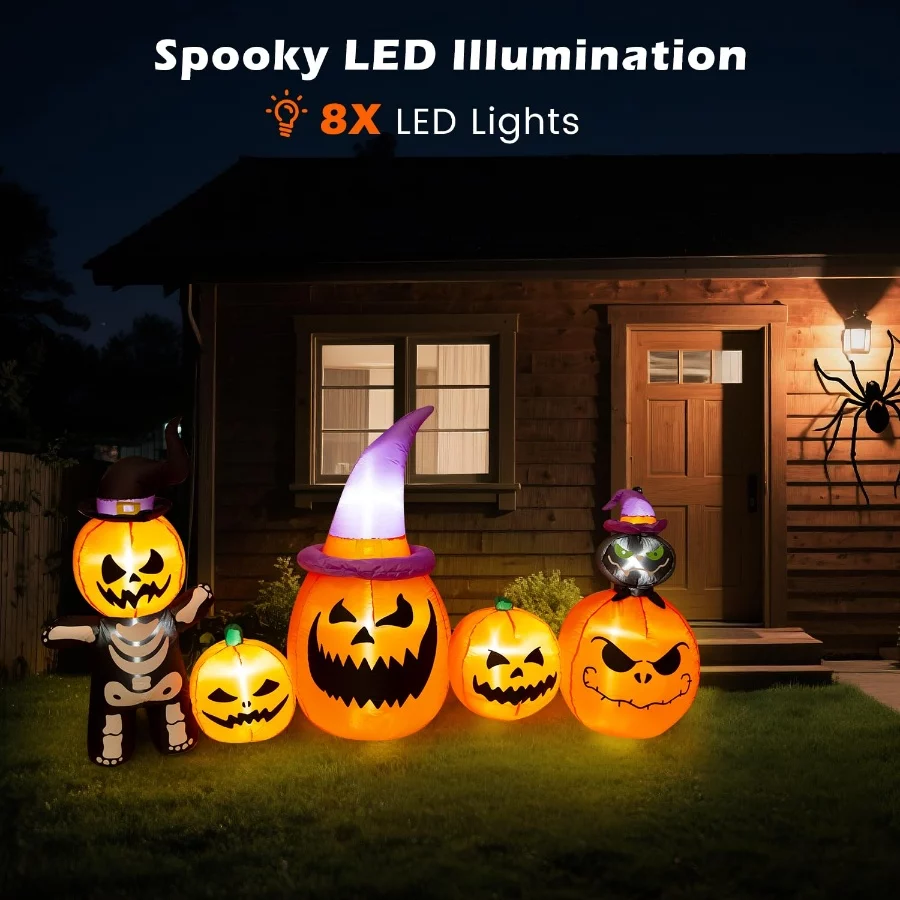 Unique Halloween Decor – Housen Solutions Halloween inflatable features 8 built-in LED lights and uniquely designed pumpkin faces, creating a creepy yet fun atmosphere for your Halloween inflatables outdoor display.