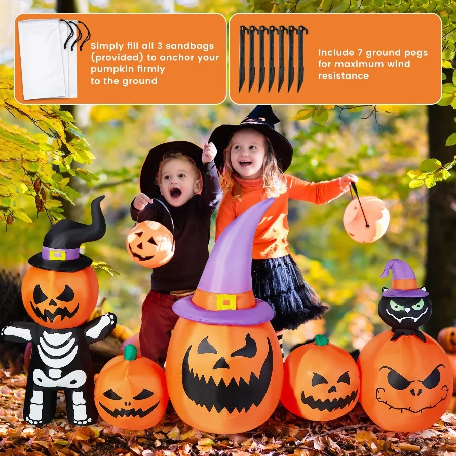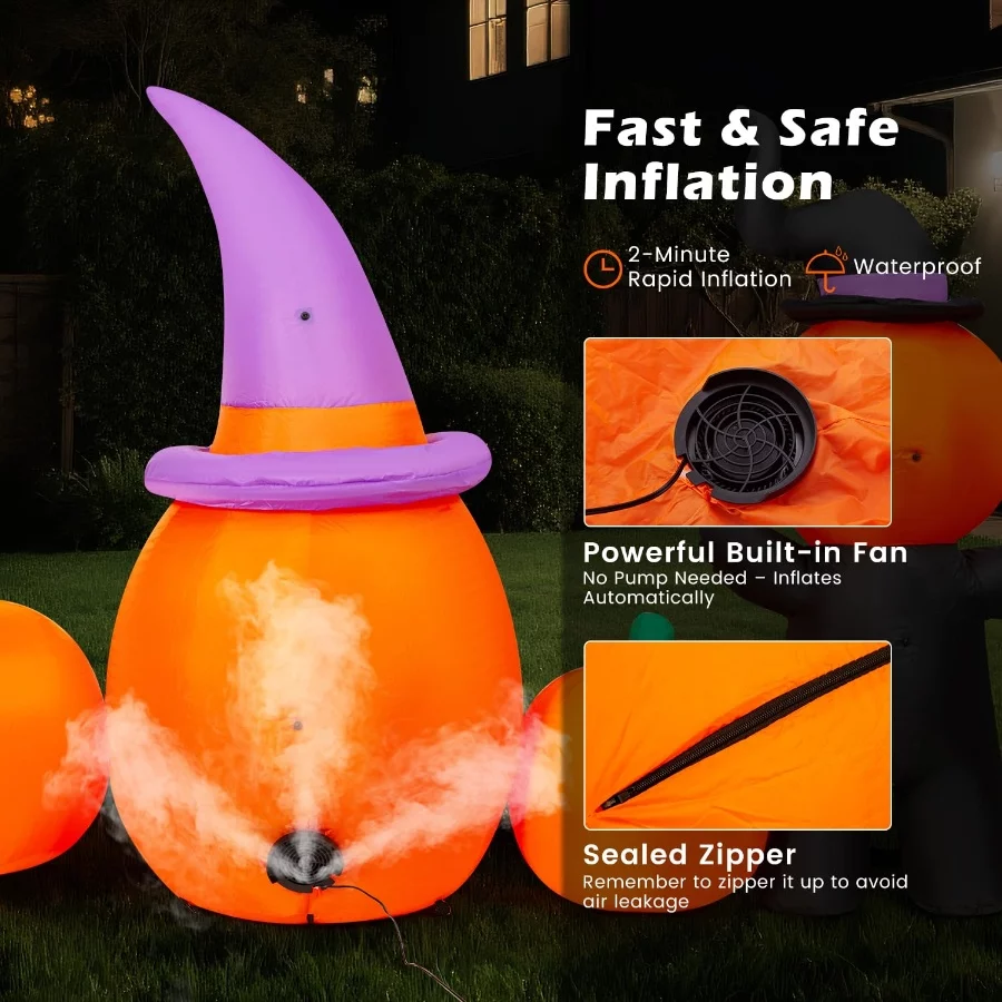 Vibrant & Eye-Catching Design – This 8FT Halloween decorations inflatables features a witch’s cat perched on top, with each pumpkin wearing a uniquely eerie expression. An unforgettable yard display that will thrill trick-or-treaters and impress neighbors!