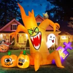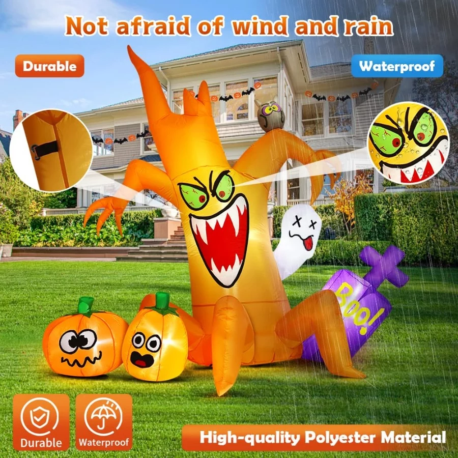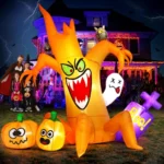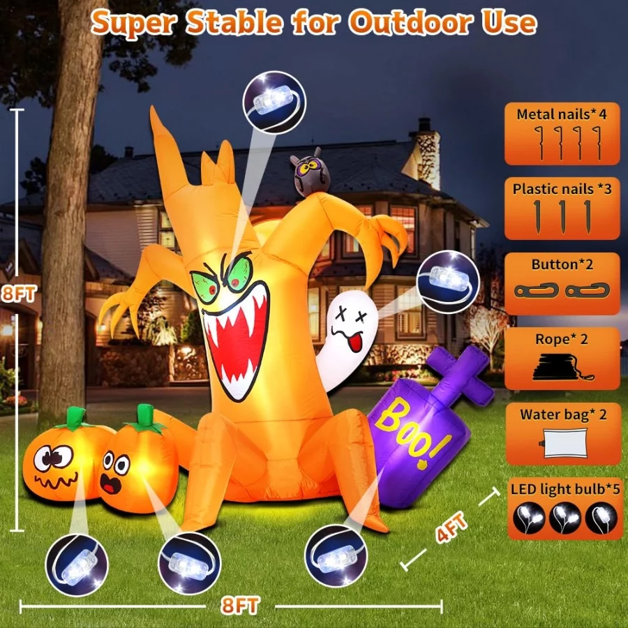 Spooky Halloween Inflatables: Spooky tree with pumpkin ghost Inflatable Halloween decor outdoor ,spooky tree with pumpkin ghost Halloween Inflatable will illuminate your yard and easily attract the guests, friends, and kids’ attention so that can be the most attractive & halloween decorations outdoor in your neighbors.
