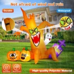 Easy to Inflate: Halloween inflatable outdoor decoration outside will self-inflate in minutes when the blower works, you just plug it with standard electrical outlet. You can easily pop up the inflatable Halloween decorations outdoor. Don’t forget to zip up the bottom zipper before inflated. Once deflated, its compact design makes it easy to store in a gift box and use for next Holiday.