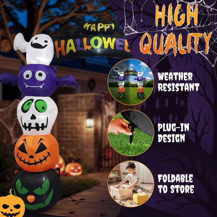 Durable and Weather-Resistant: Constructed from high-quality waterproof polyester, this inflatable is designed to withstand the elements. It’s robust and durable, ensuring it can handle rain and breeze, and remain a standout decoration throughout the Halloween season.