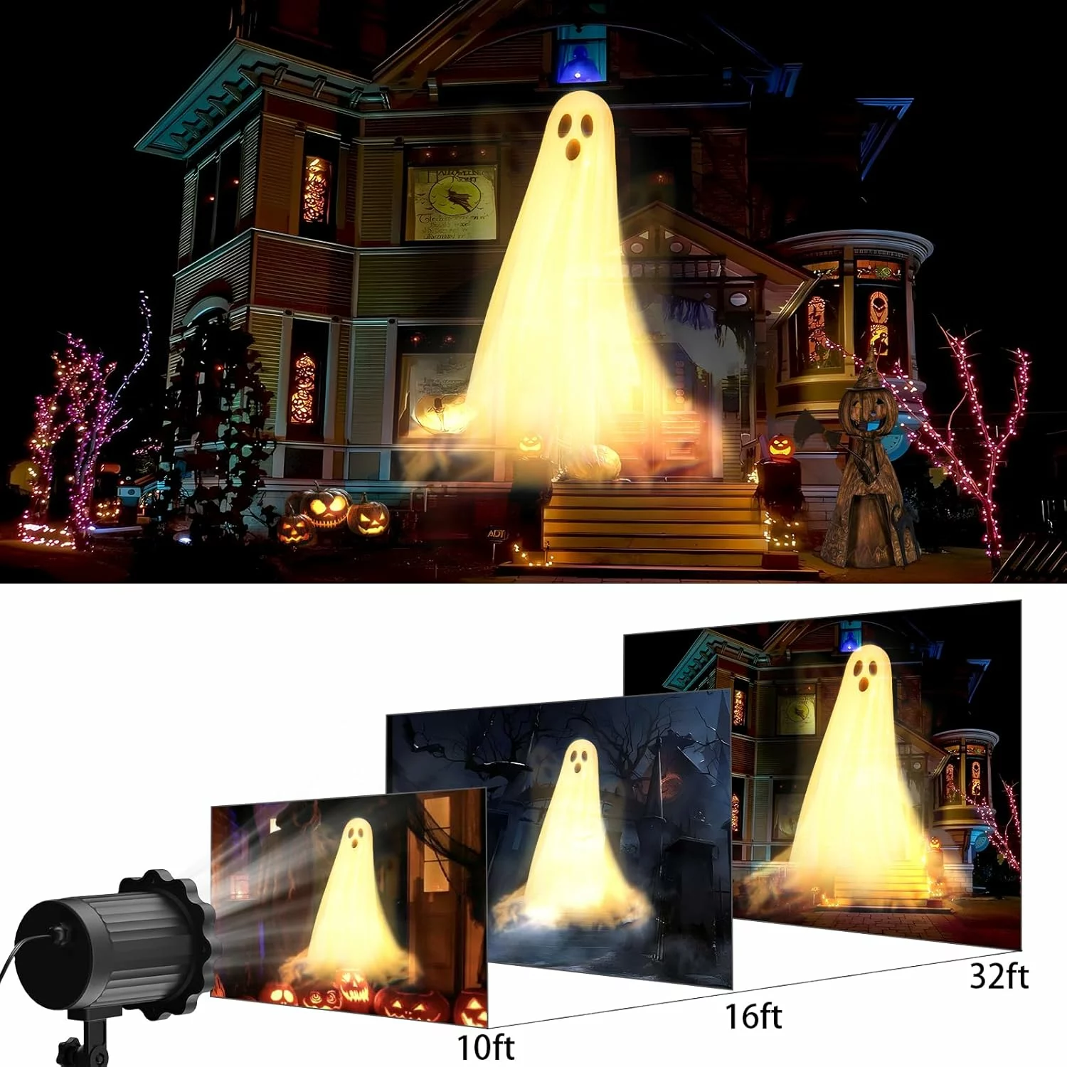 Halloween Projector Lights Outdoor, 3D Dynamic Ghost Projection Lamp Waterproof with HD Patterns for Home Decor