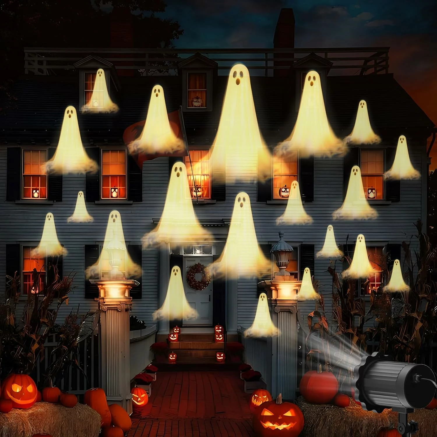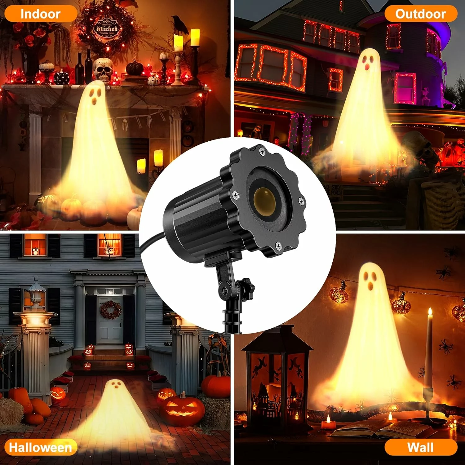 3D dynamic ghost projector: This projector projects a white ghost pattern, which is not a static image but moves, so it looks very real, and its realistic effect is amazing, creating a scary Halloween atmosphere