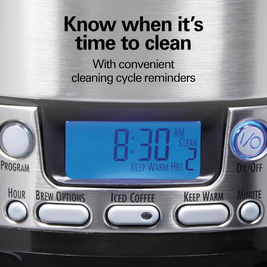 Hamilton Beach 12 Cup One Press Programmable Dispensing Coffee Maker, Internal Pot, 60oz Removable Water Reservoir, Black Stainless