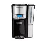 Hamilton Beach 12 Cup One Press Programmable Dispensing Coffee Maker, Internal Pot, 60oz Removable Water Reservoir, Black Stainless.