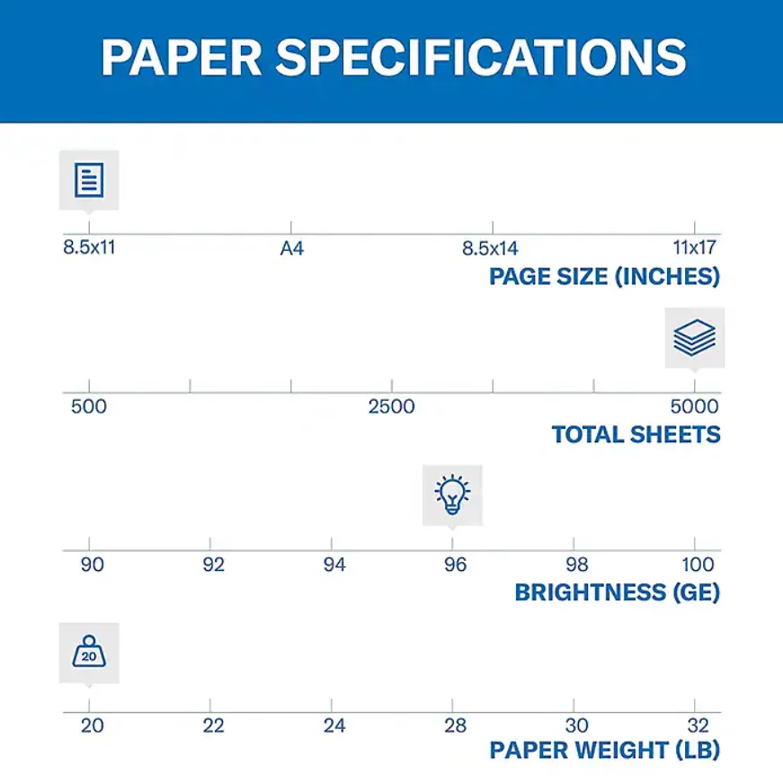 - Convenient Bulk Packaging: 5000 sheets per carton (10 reams of 500 sheets each), ideal for stocking multiple printers, handling large jobs, or keeping extras on hand without constant restocking.