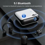 Easily pair this Bluetooth projector with external speakers or wireless headphones for enhanced audio quality. Perfect for both private movie sessions and shared entertainment, it also pairs effortlessly with iPhone and other Bluetooth-enabled devices.