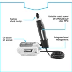 Looking to take your crafts, woodworking, carving, and other DIY projects to the next level? Look no further than the HART 20V Precision Craft Rotary Tool! Featuring an impressive variable speed of 5,000-23,000 RPM and 15 accessories included with on-board storage, this new precision craft rotary tool is ideal for precise carving, polishing, and sanding. The tool-free bit-changing system with keyless chuck design makes switching accessories a breeze, while onboard bit storage provides you easy access to accessories when in use. With integrated cord management and the ability to work with all HART™ 20V batteries (Battery Not Included), it’s never been easier to tackle all your creative projects. Get ready to take your crafting skills up a notch with the HART 20V Precision Craft Rotary Tool!