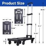 Extendable Base Plate: This folding luggage cart features a retractable loading base that extends to 23.1″, accommodating larger-sized items, giving you extra space for your cargo.