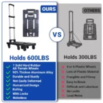 Folding Hand Truck: The Hand Truck Dolly frame is made of heavy-duty aluminum, weighing only 7 pounds and bearing up to 600 pounds, it is lightweight yet sturdy. This foldable dolly with wheels can be quickly unfolded or folded. Easy to carry, foldable, and space-saving.