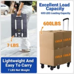 Heavy Duty Folding Hand Truck Dolly 600LB Lightweight Utility Platform Cart with 7 Wheels, Brakes & Handle Lock for Moving.