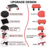 Convenient to use : Use a pry bar to lift the feet of the furniture, then place the moving tool at the bottom of the furniture and lock the universal wheel. Repeat the above operation and place the four furniture moving dollys at the bottom of the furniture. You can easily move furniture and other heavy objects.
