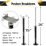 SPECIFICATIONS: Travel Range: 15 to 26 in, Working Range: 11 in, Max Lift Capacity: 5,000lb(2,267kg) each.