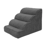 High Density Sherpa Rounded 4-Step Pet Stairs/Ramp – Furniture Access for Small Dogs, Cats & Pets with Mobility Issues – Anti-Slip Base & Soft, Washable Cover