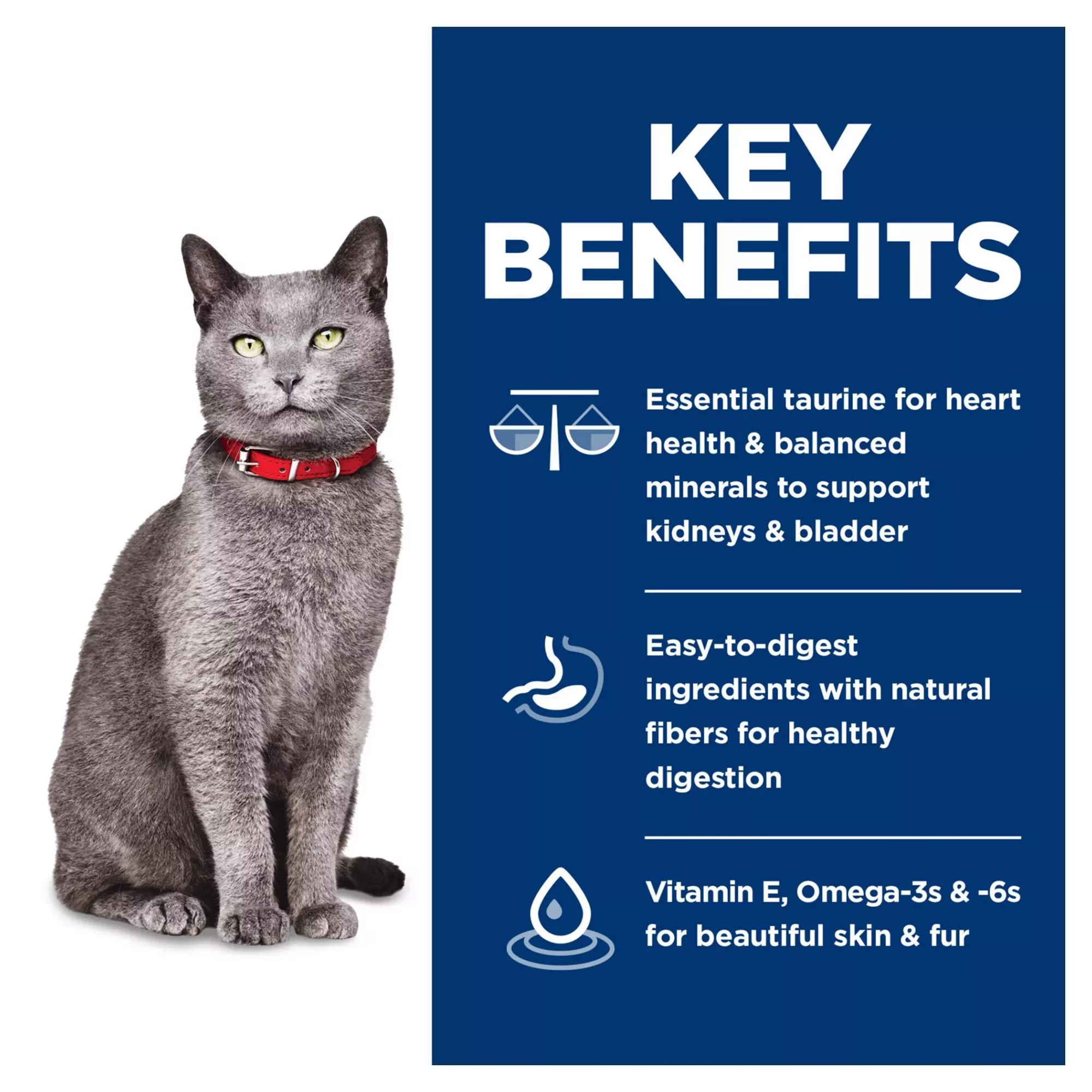 The recipe includes taurine, an essential nutrient for heart health, along with balanced minerals that promote kidney and bladder function Omega-3 and omega-6 fatty acids combined with vitamin E help nourish the skin and coat, giving your cat a healthy, glossy appearance Easy-to-digest natural fibers support digestive health, making it ideal for mature cats who need complete and balanced nutrition every day