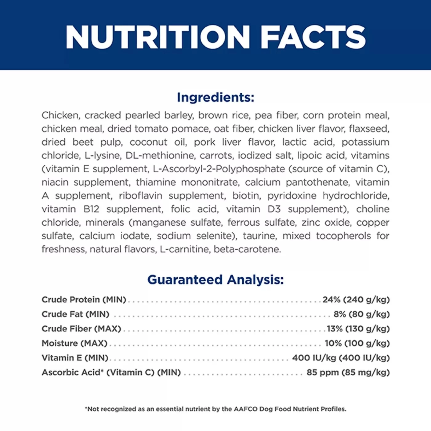 Help your dog achieve and maintain a healthy weight with Hill’s Science Diet Adult Perfect Weight Chicken and Brown Rice Recipe Dry Dog Food. Specially formulated by veterinarians and pet nutritionists, this scientifically advanced recipe supports safe and effective weight management while delivering balanced nutrition. With real chicken as the 1 ingredient, it provides high-quality protein to help maintain lean muscle mass during weight loss.
