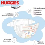 Perfect for growing toddlers who need reliable dryness, superior softness, and freedom to play, these disposable diapers combine outstanding performance with gentle care. Stock up on this trusted Huggies carton and enjoy complete confidence knowing your child stays comfortably protected and happy all day long. Choose Snug & Dry Size 6 for the softness parents love and the protection babies need.