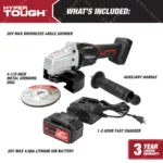 Hyper Tough 20V Max Brushless 4.5-Inch Cordless Angle Grinder – Includes 4.0Ah Lithium-Ion Battery & Charger