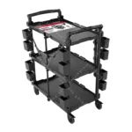 - Ergonomic Design: 3 collapsible shelves designed to offer you plenty of space when moving equipment, tools, files, garden supplies and more