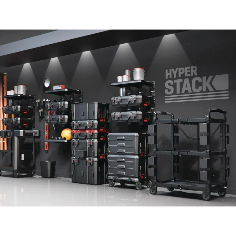Works with Hyper Tough Modular Garage Tool Storage System: Perfectly compatible with the Hyper Stack modular garage storage system, it can be used with other components such as tool boxes, dollies, hooks, etc. to build a complete tool storage solution, allowing users to flexibly adjust and expand storage configurations according to work scenarios and needs.
