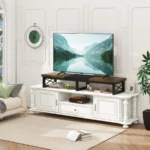 Ample Storage Space: This tv console has 2 tiers open storage shelves, provides ample space to organize and display your sound bar, controllers and cable tv box, satellite receiver, gaming consoles such as PS4, Xbox. Keep your living room tidy and clutter-free.