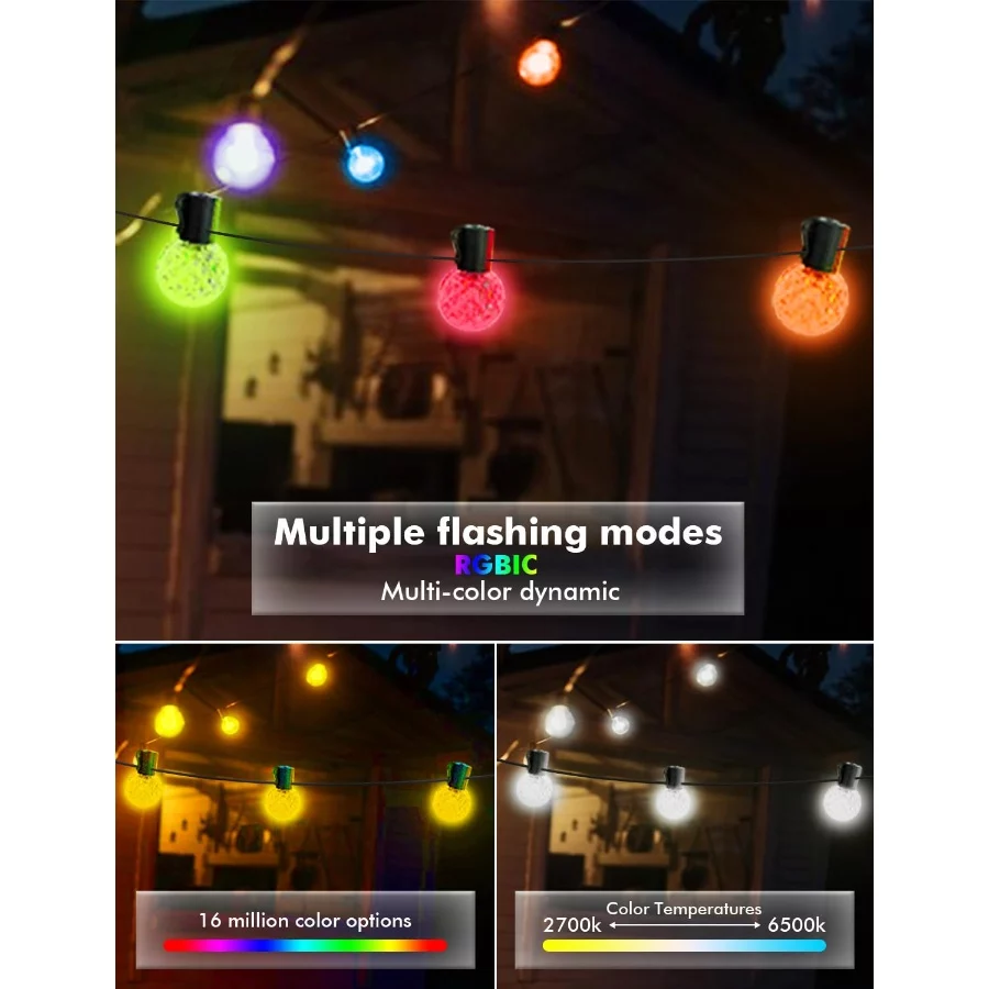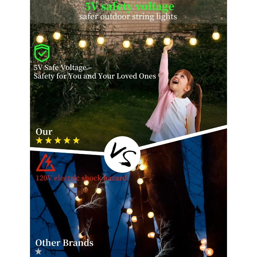 IKERY 100Ft Outdoor RGB Globe String Lights USB 5V, 50 LED Shatterproof Bulbs, Waterproof Patio Hanging Lights for Backyard, Pergola, Christmas.