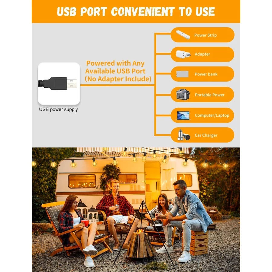 USB Powered Led String Lights – With a convenient USB interface, you can light up the LED lighting fixture by USB adapter and any other power source with USB interface.(e.g.mobile battery, plug, computer, etc.). It is easy to use with a mobile battery and can be used in any location.If your car has a USB port, you can connect it there to get power.The USB power supply makes it ideal for campsites where a power source is not available.