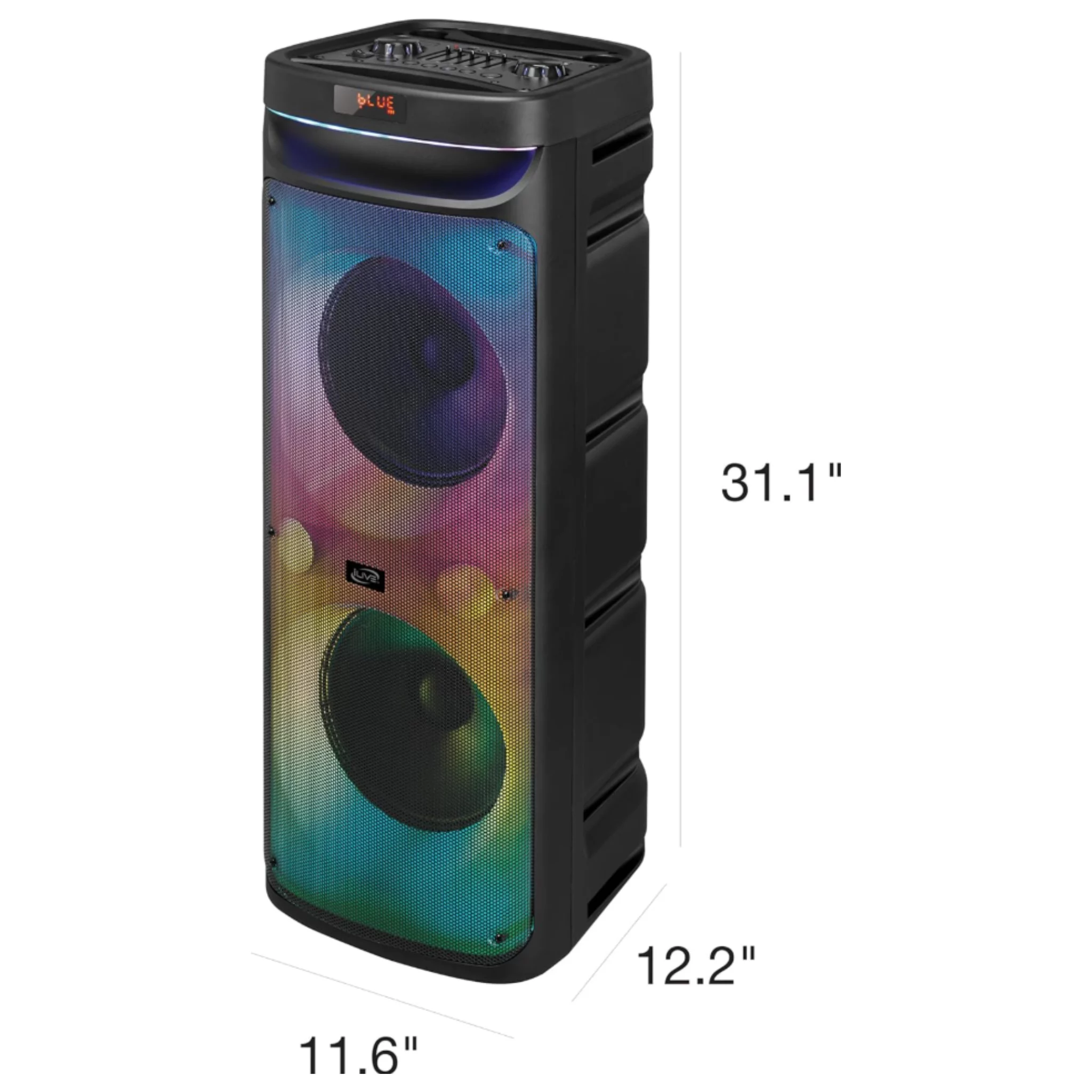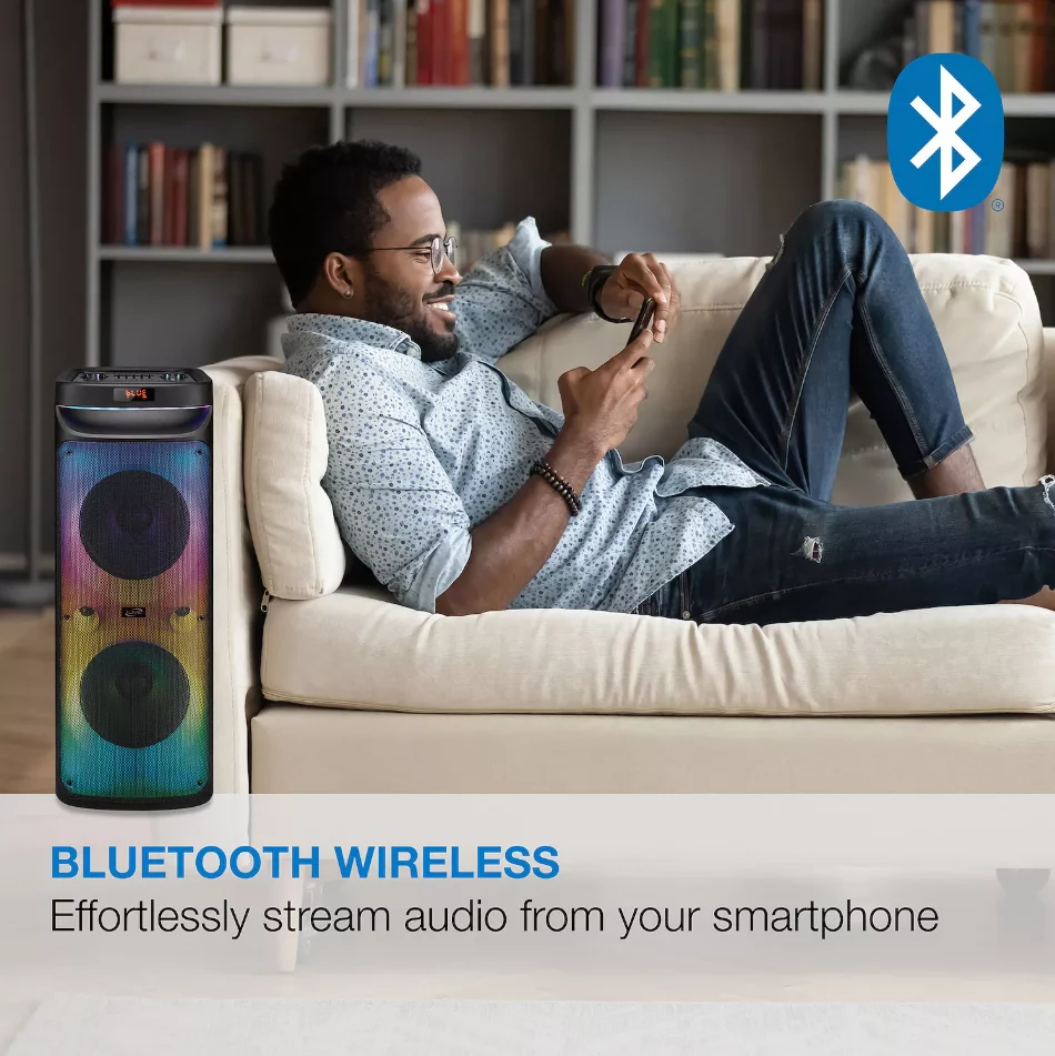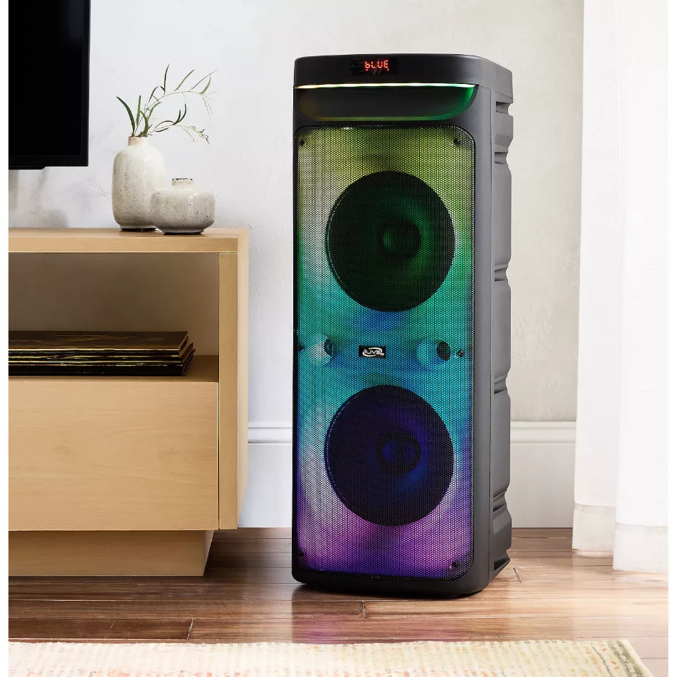 Turn any gathering into an epic party with the iLive LightShow+ Wireless Speaker System (ISB653B). This powerful Bluetooth speaker delivers booming sound and mesmerizing, music-reactive color-changing lights that sync to your beats. With two 10-inch full-range speakers, a 1-inch tweeter, and a built-in amplifier pumping out 40 watts of clear, distortion-free audio (80dB sensitivity), you’ll feel rumbling bass and crisp highs across a wide 48Hz–20kHz frequency range.