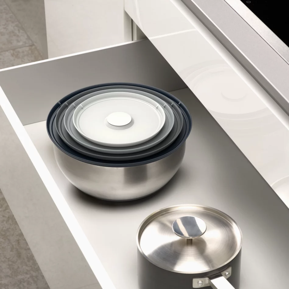 Made from stainless steel, silicone, and polypropylene, this set is backed by a 1-year limited warranty. Ideal for everyday meal prep, baking, serving, and fridge organization, the Joseph Joseph Nest Prep & Store 8-pc. Bowl Set delivers professional-grade quality with thoughtful, space-efficient innovation. Say goodbye to cluttered cabinets and mismatched lids—upgrade your kitchen essentials today and enjoy smarter, tidier food prep and storage.