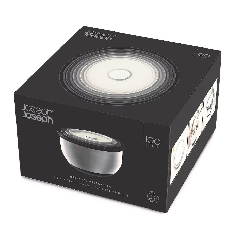 Streamline your kitchen prep and storage with the Joseph Joseph Nest Prep & Store 8-pc. Bowl Set—an innovative, space-saving solution that combines premium quality with smart, compact design. These high-quality stainless-steel bowls nest neatly inside one another when not in use, while their easy-find, snap-together lids keep food fresh and organized in the fridge or pantry.