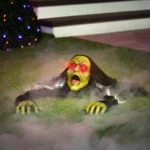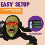 Realistic and horrible: the zombie looks like trying to crawl out of the ground, her face and arms are detailed and realistic, eyes glow and it screams and yells really loud, it’s a terrific addition to your Halloween decorations.