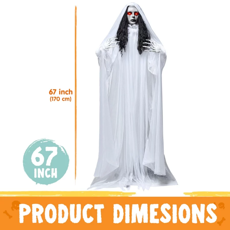 JOYIN Outdoor Halloween Decoration, 67″ Life Size Bride Ghost with Scary Sound for Yard Lawn Garden Haunted House Party Props