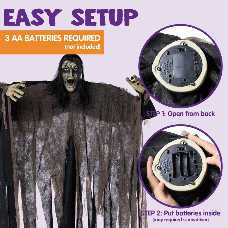 This decoration was super creepy and held up great outside for the entire month. The sound effects that played whenever kids walked by added the perfect spooky touch. It was a big hit, and I loved how it added to the Halloween atmosphere. Definitely a great addition to my yard!
