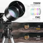 ENHANCED OPTICAL PERFORMANCE: Immerse yourself in celestial beauty with fully multi-coated optics, offering heightened contrast and brightness. The 70mm large aperture objective provides a wider field of view, capturing breathtaking celestial scenes with clarity and precision.