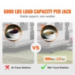 Stabilize your RV: Use our RV stabilizer jacks to provide reliable stability for your RV. Each set includes four jacks with a cushioned rubber ring on top. A single jack can hold up to 6000 lbs/2.72 tons. Triangular support structure ensures solid stability. These RV leveling jacks fit easily under your vehicle, ensuring a safe, sway-free experience. Say goodbye to any instability issues with our RV stabilizer jack.