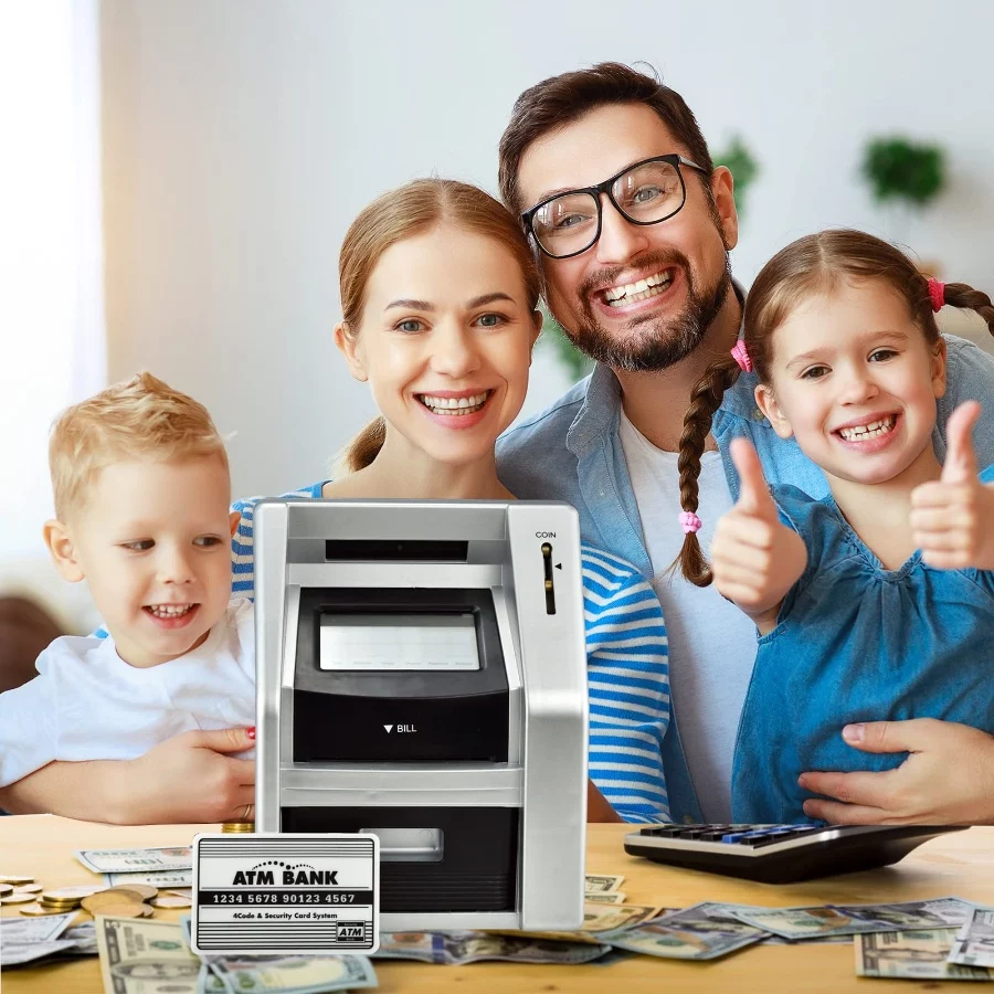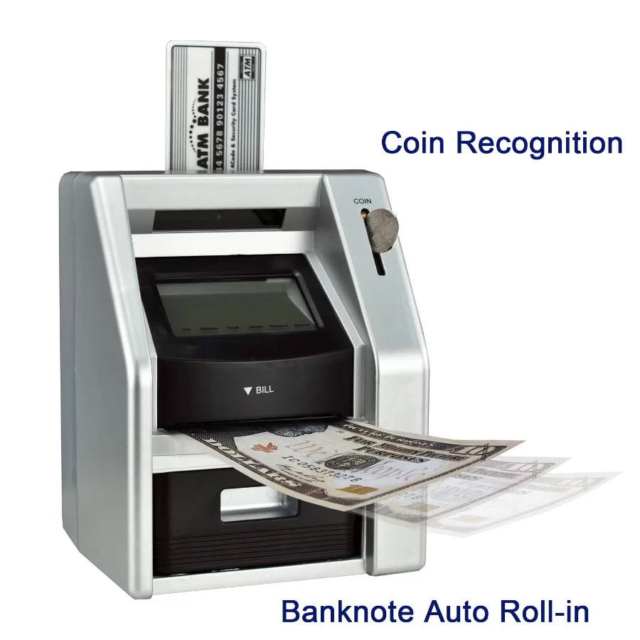 Touchscreen ATM Piggy Bank – Upgraded design with backlit touchscreen for a modern saving experience.