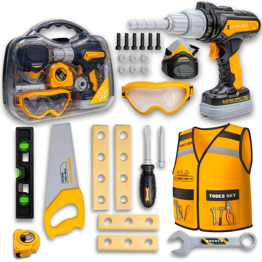 Complete Construction Toys Set: This comprehensive kids’ tool set includes a battery-operated drill, saw, screwdriver, toddler toolbox, safety glasses, protective mask, vest, and more tools to inspire imaginative play for boys and girls ages 3 4 5 6