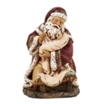 Kneeling Santa Claus Holding Infant Christ, 7″ Christmas Statue, Beautiful Home Decoration For Holiday Spirit And Faith