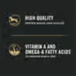 - Vitamin A and omega-6 fatty acids work to nourish skin and coat