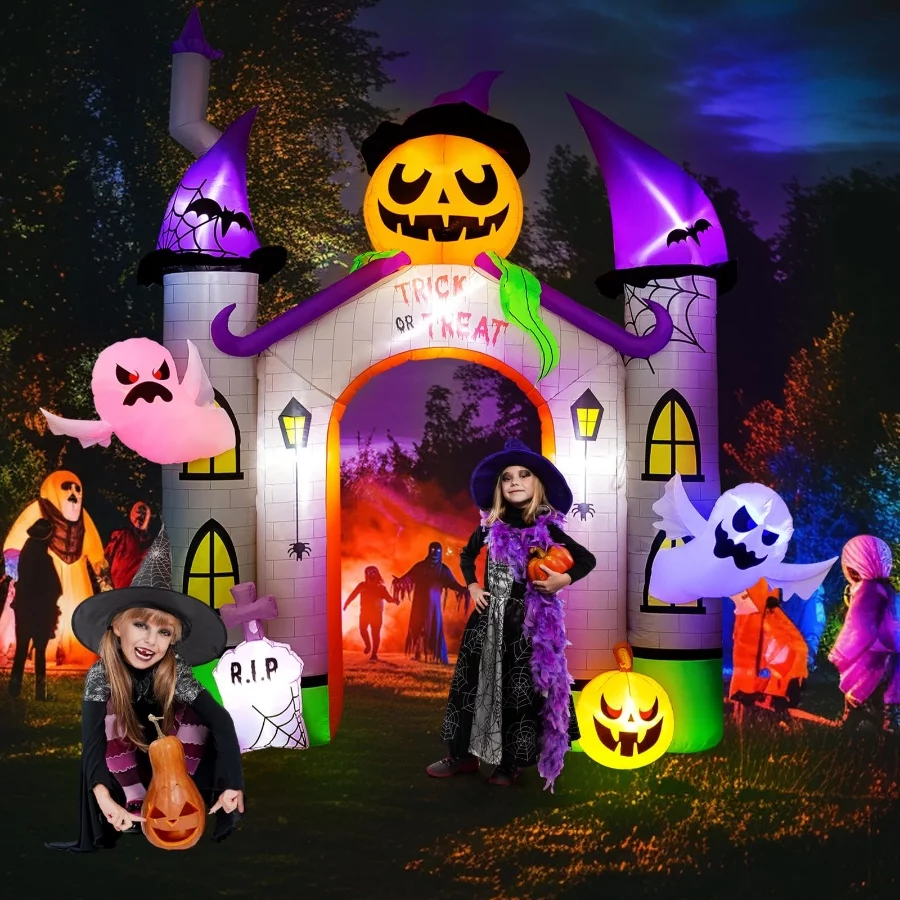 Large 11FT Halloween Inflatable Castle Arch with Pumpkin Ghost Trick or Treat LED, Blow Up Haunted House Yard Patio photo review