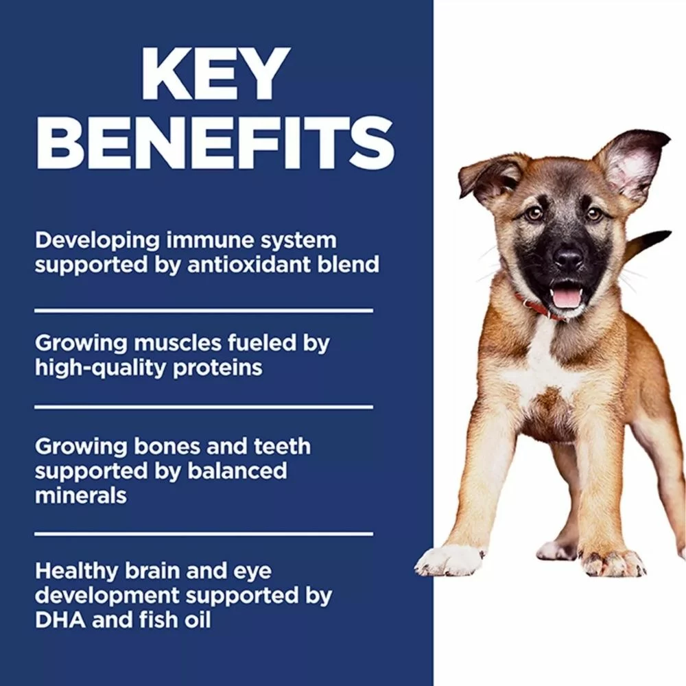Designed for large puppies, it provides the right amount of calcium and minerals to support steady bone and teeth development. The inclusion of DHA and fish oil helps promote healthy brain and eye development, while an antioxidant blend strengthens the immune system. Prebiotic fibers support digestion and gut balance, and high-quality proteins fuel growing muscles and energy.